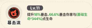 暴击流是将各种伤害直接翻倍的辅助输出技能,默认暴伤是200%,可以通过各种加成来实现暴击伤害翻几倍的效果,与攻击流派最适配,对物理输出流派加成较高,对魔法输出流派加成有限。流派升级后会提升暴击、暴伤和生命。