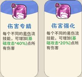 ③伤害强化,流派9级后升级为伤害专精。核心增伤技能。最高可以有16个易伤技能,直接每次增伤640%基础攻击的伤害,很强势。我猜也是描述错误了。