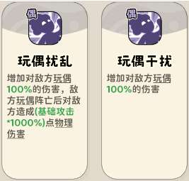 ②玩偶干扰,流派升级到18级后升级为玩偶扰乱。克制玩偶流派技能,但效果不加。
