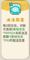 ①冰冻伤害。核心技能,冰冻层数越高伤害越高。