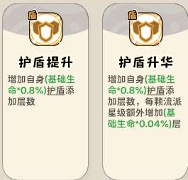 ③护盾提升,流派升级到10级解锁,流派升级到25级后升级为护盾升华。增加护盾层数但数值较低,护盾升华数值不错。