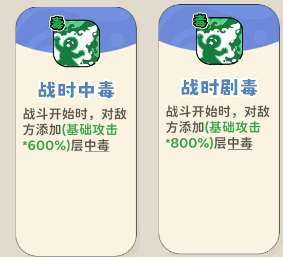 ①回合中毒。普通核心技能,每回合添加中毒,前期开荒很强势。