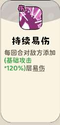 ②回合易伤,流派6级后升级为回合创伤。核心技能。随着回合数越多添加易伤层数越高。