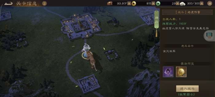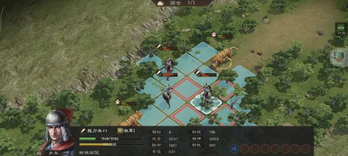《新三国志曹操传》游历事件老虎作害攻略:本关玩家操控老虎,其拥有“优先反击”的强力buff。开局集火中间高血量目标,随后利用反击在敌军阶段解决剩余敌人,即可轻松过关。