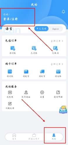 1、首先打开app进入右下角【我的】界面,点击上方【登录/注册】;