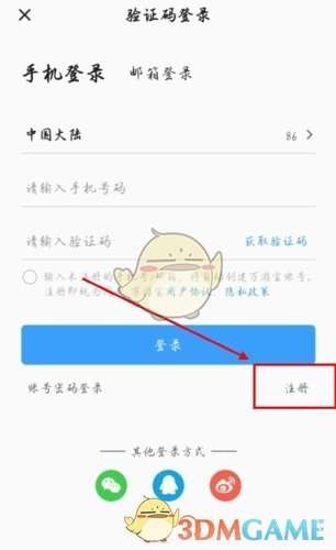 2、然后进入登录界面大家可以看到右下方有【注册】选项,点击它;