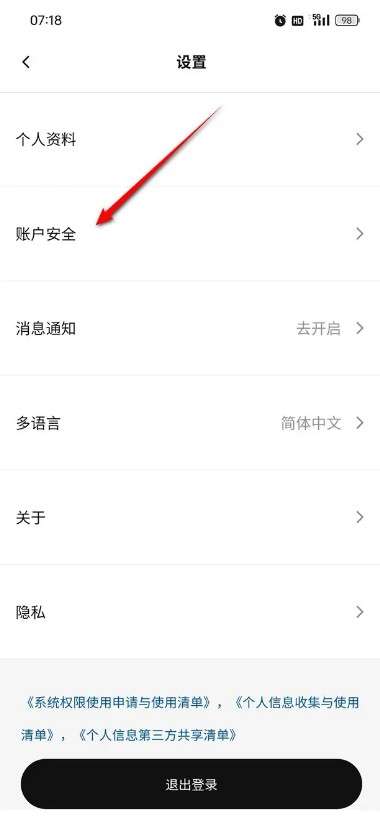 点击“账户安全”。