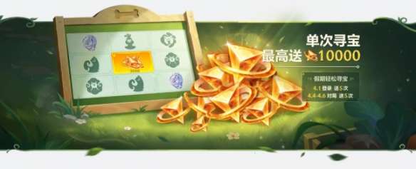 每日轻松登录寻宝,周末每日对局送3次寻宝机会。4月1日登录额外赠送5次寻宝机会,4月4日-4月6日对局送5次寻宝机会。