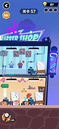 谁也别想跑第57关怎么过,首先我们拿到喷气罐和湿毛巾,把湿毛巾放到二楼衣服旁边,然后再把喷气罐放到一楼左边的镜子下,然后调整水流和电流方向,让一楼做头发的女人的头发烧起来,跑到喷气罐旁引起爆炸。