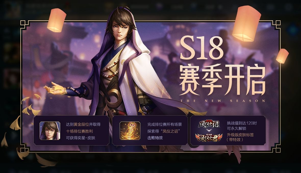 S18赛季开启: 2020新年新开局,全新赛季开启。排位赛探索入口优化至主界面,S18赛季一起探索,达成里程碑将解锁对应物件获得奖赏;赛季专属皮肤【弈星-混沌棋】上线;S18赛季荣耀战令开启。