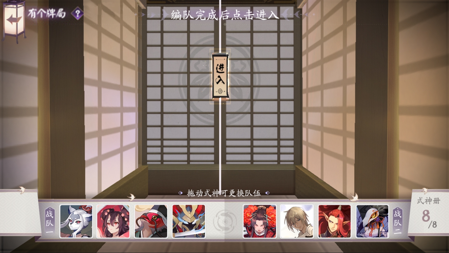 有个牌局为《阴阳师:百闻牌》的竞技场,区别于天梯的个人卡组竞技,玩家消耗一定的游戏道具或金币可进入牌局战斗,将使用游戏提供的式神组建自己的队伍,式神卡牌随机生成卡组。根据组建的队伍进行车轮战,胜利越多则奖励越丰厚。