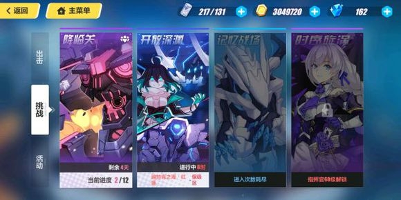 在崩坏3手游中,迪拉克之海玩法开启时间内,玩家可以在挑战页面选择开放深渊,然后切换迪拉克之海进行挑战。