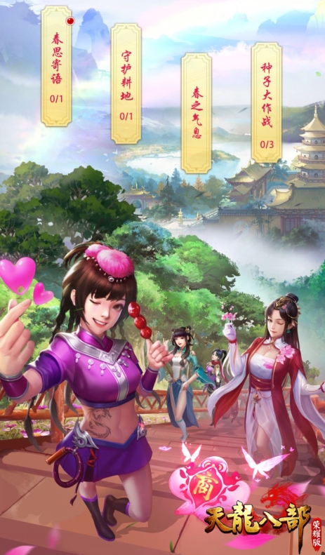 在3月1日至3月28日期间,《天龙八部荣耀版》将会满足玩家在游戏中踏青游玩的需求,陆续开放春思寄语、守护耕地、春之气息与种子大作战四大迎春主题系列活动。引导玩家主动关注中国传统文化里的农耕情怀,借助专属玩法共同庆祝春天的到来。