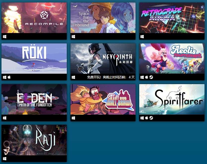 提供免费试玩的游戏包括国内玻璃心工作室开发的2D横版动作冒险游戏《守夜人:长夜》,计划于2020年初上线PC、Xbox One及PS4平台,后续还计划上线Switch平台。