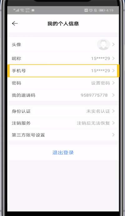 4、点击手机号,验证完原手机号后即可更换新的手机号