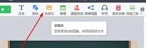 1、进入到希沃白板,选择需要导入的那个页面,可以通过上方功能栏中的“多媒体”功能来帮助你进行导入,对其进行点击即可,