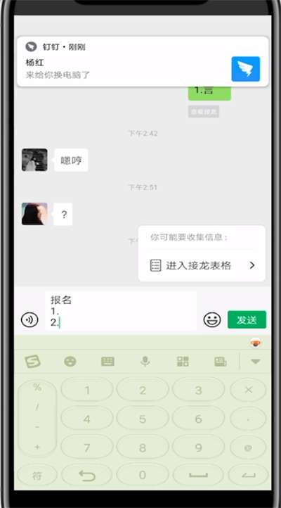 4、这时点击右上方弹出的进入接龙表格