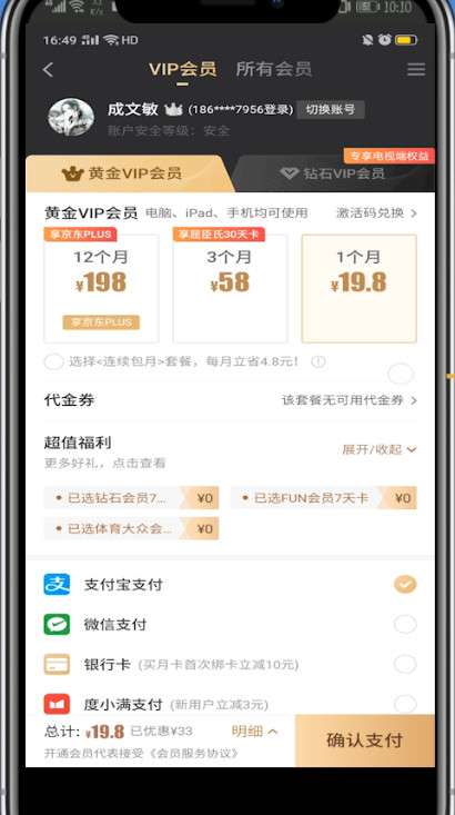 5、点击连续包月,取消勾选下方的到期按每月15元自动续费