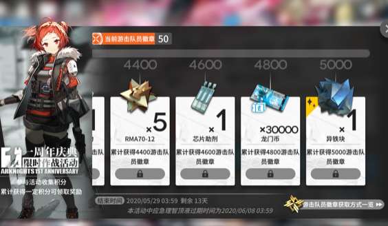 活动获得的专属道具为游击队员徽章,以下简称材料。