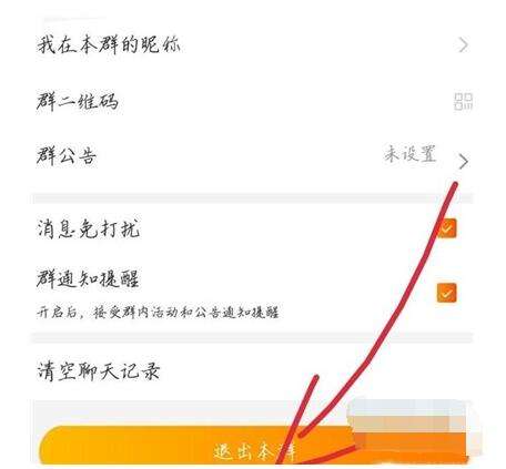 3.将界面下拉到最底部,点击【退出本群】按钮即可