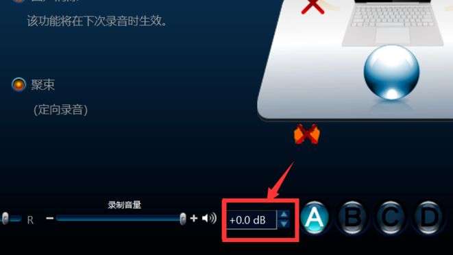 设置完成以后,仔细观察界面,找到下图中红色方框内的位置。将它设置到0DB。