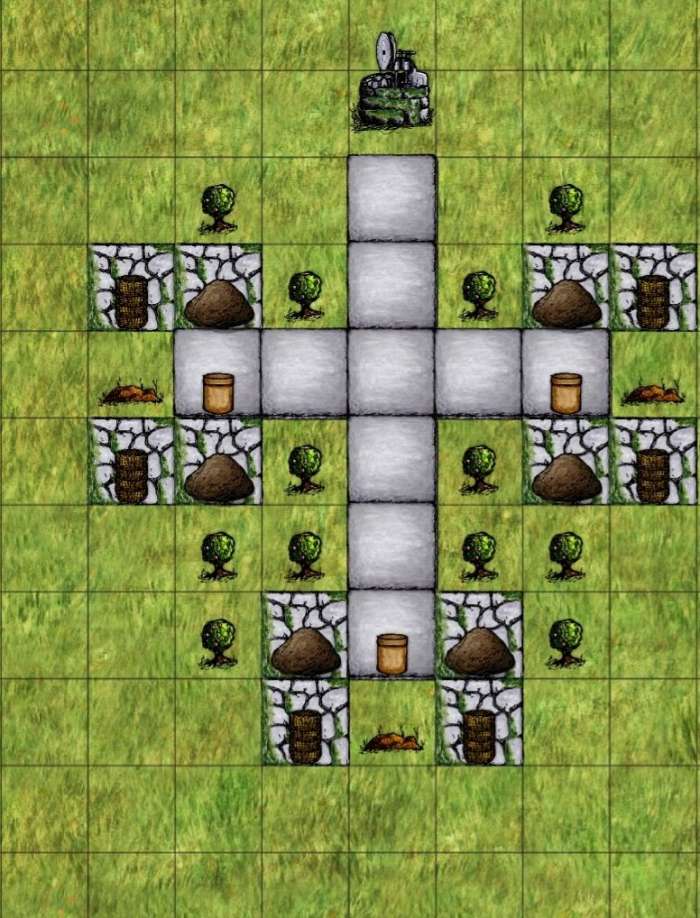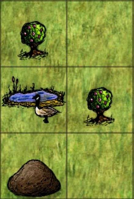 (陶罐代表水桶,一堆篮子代表篮子,肥沃土壤代表堆肥,用的软件没有这些东西,用这些代替表示)