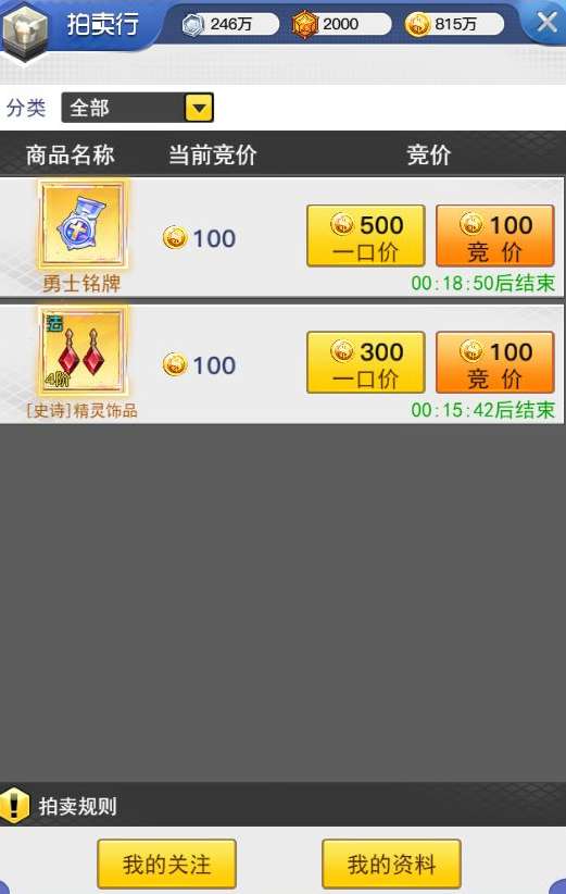 1、游戏中Boss掉落所产出的道具拍品可以选择上架拍卖,默认上架本服拍卖行。