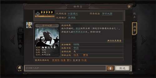 战法上守而必固虽然只能嘲讽主将,但发动率是100%的指挥类技能,夏侯惇加入魏骑后建议放弃后发制人或鲁莽来选择守而必固。