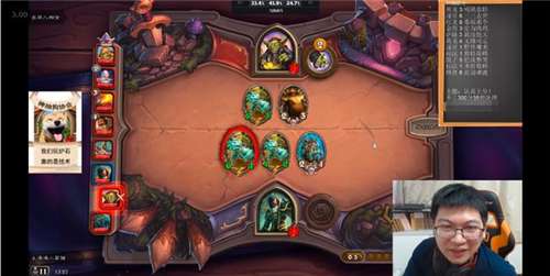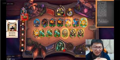 在开场之时,会长选择的棋子是大范这个单体buff能力很强的英雄。在开局的前期,会长看到了2个巨蜥棋子,直接都收归旗下,同时利用大范的英雄技能进行buff。同时,会长也生出了一个比较另类的打法计划,那就是利用前期亡语棋子数量较多的因素,直接开始对巨蜥进行+1/+1的buff。同时因为本时期,小黄人这个棋子,不仅有亡语能够对巨蜥进行buff,同时也其亡语也能在战斗中有效buff圣盾给高身材的巨蜥。