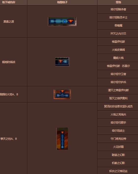* 地下城种类与怪物信息列表阻截阶段