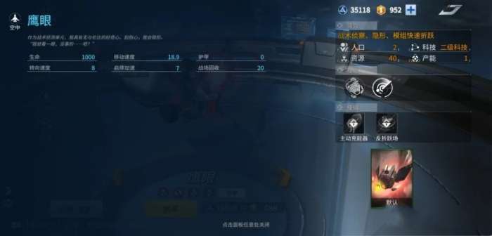 反折越场则可以为赛特斯集群或者平叛者阵地提供反折越区域以大大提升其生存率,亦或者在总攻之前在敌人的基地上方部署反折越区域让敌人只能在附近的基地进行部署然后驰援从而极大程度的延缓了敌人的脚步,但装配反折跃场的鹰眼是战场唯一且在部署状态下为显形状态。