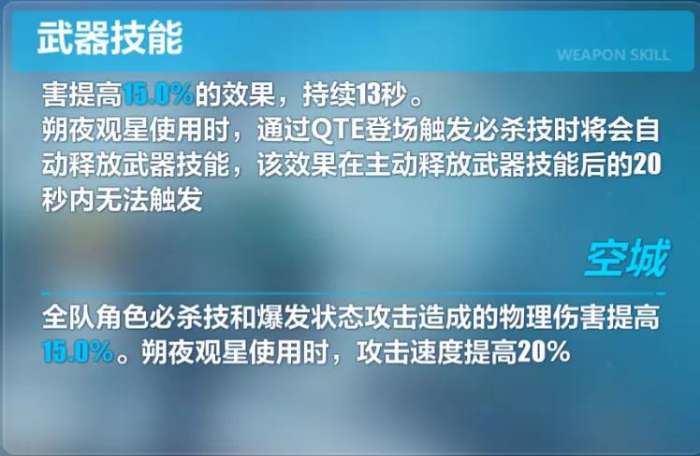 被动技能“空城”能为全队的角色提供出色的部分技能的物伤加成,相当于多带半件场下辅助圣痕。