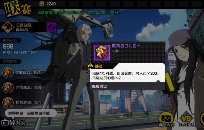 每日完成一轮对局:异人币*200,未送达的心意*2