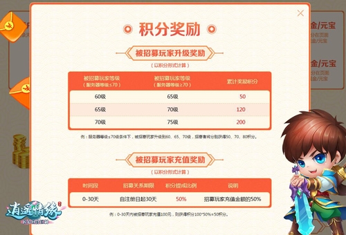 在这样一个《逍遥情缘》新服开启的喜庆日子里,我们的全民招募活动仍在持续中!20万元的现金大奖由逍遥少主们全民共享,尽情感受这份游戏盛宴带给我们的喜悦吧!那么该如何分享这20万元奖金呢?当然是喊上小伙伴一起来分啊!通过全民招募计划邀请你的好友一起来《逍遥情缘》闯荡将会给你活动积分,这些活动积分就是瓜分20万现金的依据哦~你邀请的朋友越多,你就有越大的机会获得积分,那么你就能换到更多的现金或者元宝!