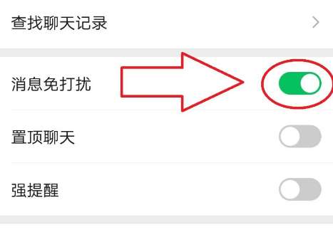 3、点一下,使“聊天免打扰”后面的按钮变绿。
