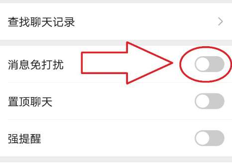 2、在中间位置找到“聊天免打扰”选项,一般情况下,后面的按钮显示为灰色。