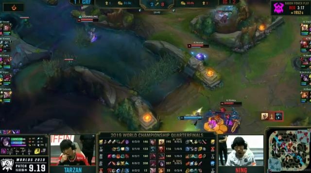 这是S9八强赛的战争,IG与GRF的第四场比赛已经开始,这场比赛终于是没有让网友们失望,在开始的时候,IG就打出了自己的气势,6分钟的时候拿下了上路的一血,之后又顺利地打了1波团战,经济获得了一些优势。