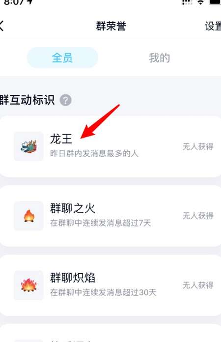 5、群管理或者创建者,可以在群荣耀设置内,开启展示群互动标识。