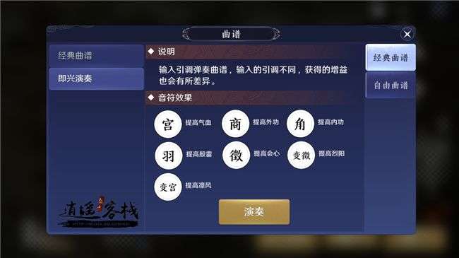 玩家获得曲谱之后只需要在乐伶身份中选中曲谱,就可以开始演奏了。