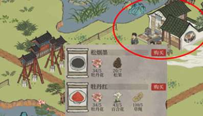 玩家需要在游戏中的商店,也就是飞泉绿的这个商店里面,就可以通过使用五个牡丹花,然后在加上七个松果,就能顺利的兑换松烟墨了。这个松果容易得到,然后牡丹花的话是需要使用牡丹花和百合花以及草绳,就可以顺利的合成这个东西了。