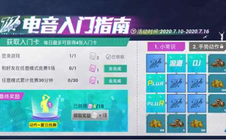 同时获得的电音入门卡还可以用于参与翻牌活动,在九宫格中翻牌凑成一行或者一列即可解锁对应的金币还有服饰币等奖励。