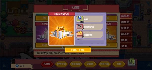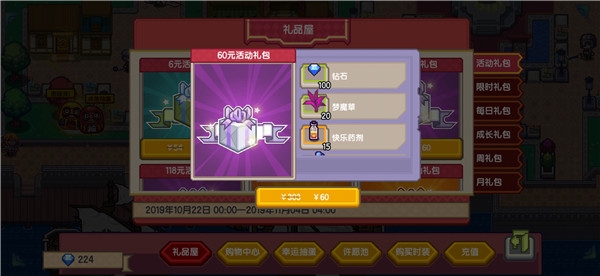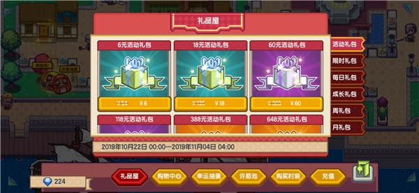 这里也是推荐购买60元礼包和388元礼包,注意这6个礼包限时售卖到11月4日,下面可以看一下:
