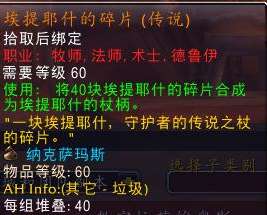 此番怀旧服,小编确信在钢镚的助力下,很多法爷、术爹、小D、牧娘们早就按奈不住激动的心情要入手这个传说法杖了。但,你们真的准备好煎熬了吗?因为该武器首先需要你拿到克苏恩的橙杖道具,然后是漫长的NAXX伐木,一个CD你能拿上6个碎片已经是阿弥陀佛的事情了,搞的不巧就3~4个碎片而已。这样一个鸡腿杖需要40碎片,大伙自己捋一捋,你需要打多少个NAXX吧,何况竞争也很激烈。
