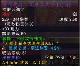 目前该武器在G团的价格甚至很多时候卖不到2000G,但是这又有什么关系呢?它的历史背景以及颜值决定了它在魔兽世界历史上特有的地位:好兄弟,讲义气,我先拿,你往后臊臊。