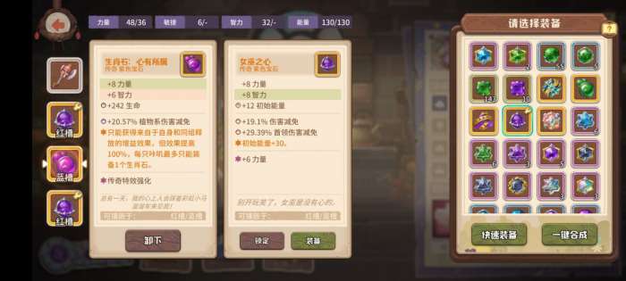 正常的女巫之心初始能量是加30 那么我们只需要洗出个主属性加初始能量 这个很好洗 正常是先洗出2个副属性 然后开始刷主属性 刷到我们需要的就停 再把数值刷到最高 2个女巫之心这里我们达到了84的初始能量