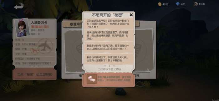 技能:口红(锁定目标后使用,有几率获得目标一件物品)