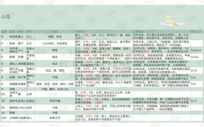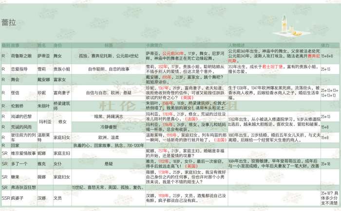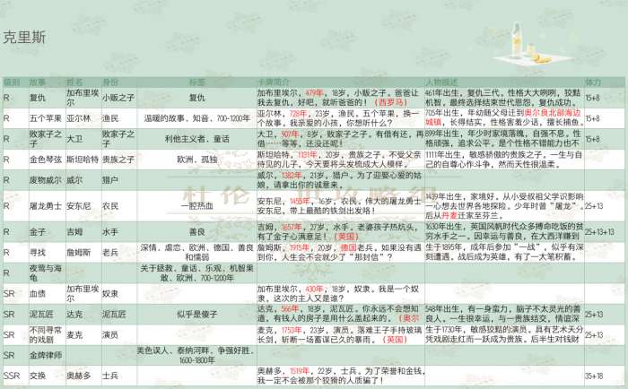 一个标签能对应多个故事,尤其地区时间范围较广,不能保证抽到哪一个。各故事标签持续更新中,地区时间标签可自行通过卡牌简介推断。部分卡片资料来自上一次测试,不保证是否有修改。