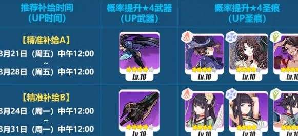 5)精准补给A与精准补给B的补给次数相互独立计算、互不影响。以精准A为例,其补给次数会一直累计在精准A中,每一期精准A的补给次数和十连保底的规则和原有的精准一样,但不会对精准补给B产生影响。