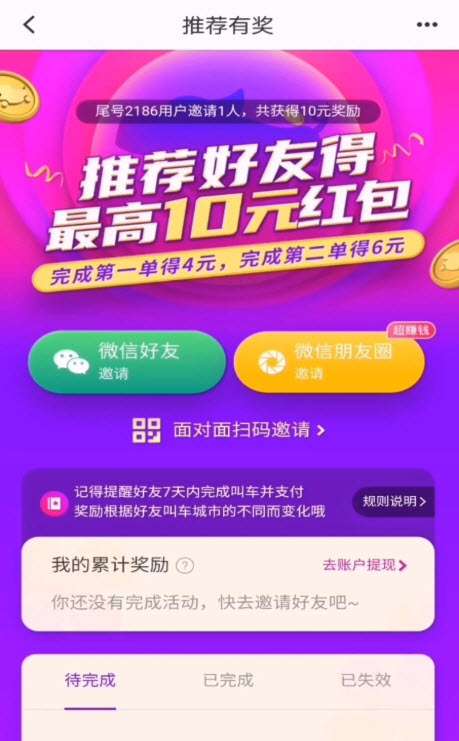 花小猪邀请乘客奖励