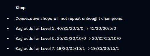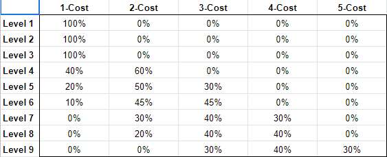 各等级对应各费用棋子的刷新几率: